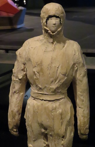 The People of the Mine – Steve Denny Exhibition at Mona, Hobart Tasmania A model of a person in a white clay jumpsuit